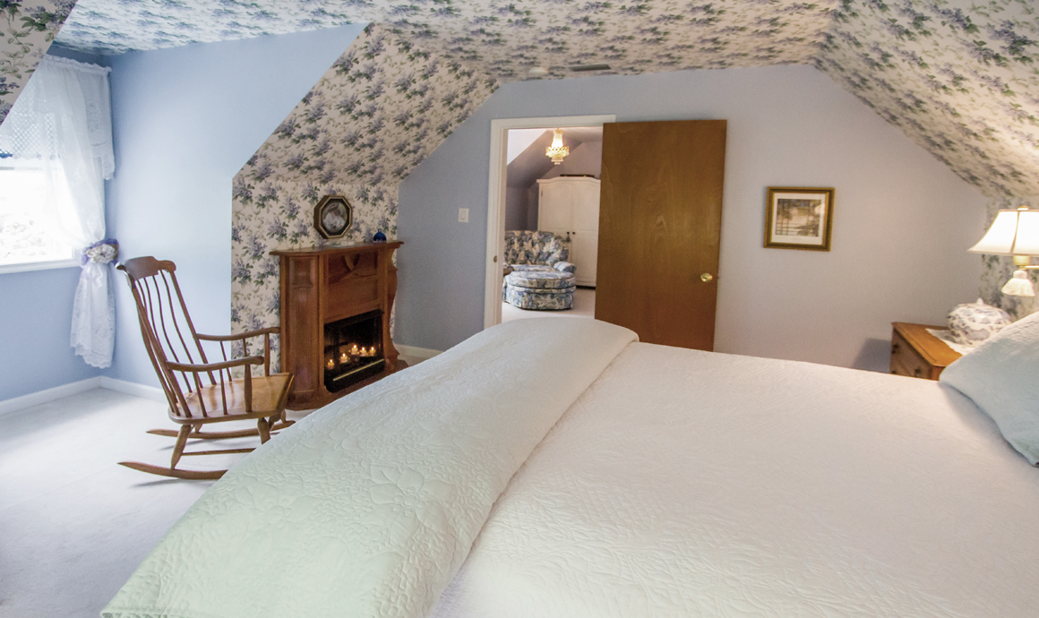 The Blue Ridge Suite is a three-room accommodation, featuring a Tempur-Pedic king size bed, candlelight fireplace, private sitting room with a window seat for two, and private bathroom, all with long views of the Blue Ridge Mountains. This suite features a naturally soothing mountain creek outside the bedroom window.